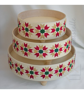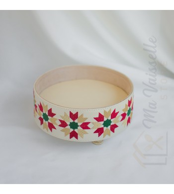 Plateau de présentation artisanal Lyla Artisanat marocain Couleur: beige avec bordure rouge/vert/doré Forme: rond Revêtement simili cuir Utilisations: service du thé à la...