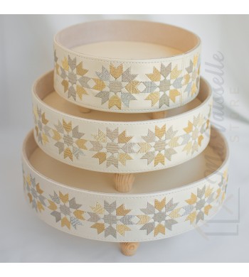 Plateau de présentation artisanal Warda Artisanat marocain Couleur: beige Forme: rond Revêtement simili cuir Utilisations: service du thé à la menthe, présentation de...