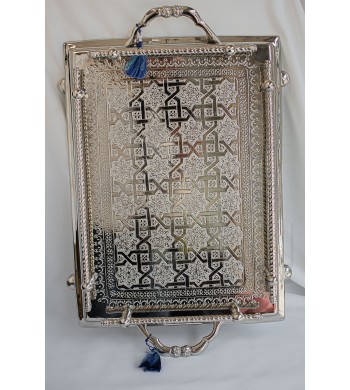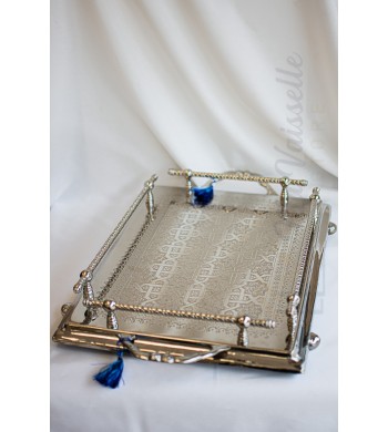 Plateau à thé marocain artisanal Entièrement travaillé à la main Chaque pièce est unique et résulte de longues heures de travail Matériau: Cuivre et nickel Couleur:...
