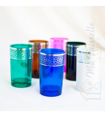 Set de 6 verres à thé Couleur: le set comprend 1 verre de chaque couleur (bleu, vert, violet, rouge, rose, orange) Le set comprend 6 verres Dimensions: hauteur 10.5cm,...