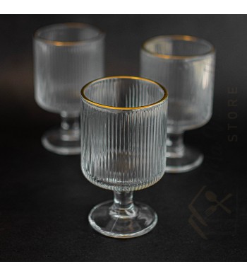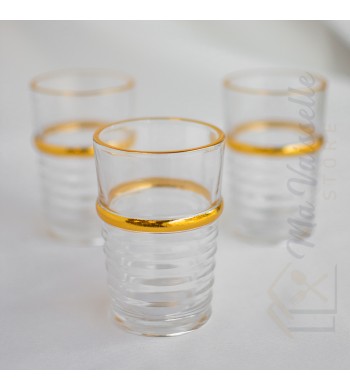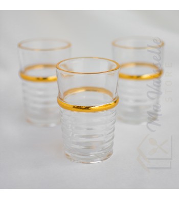 Set de 12 verres à thé Matériau: verre épais et résistant Couleur: transparent avec liseré doré Marque: Royal swiss Contenance: 180ml Entretien: facile, compatible lave...