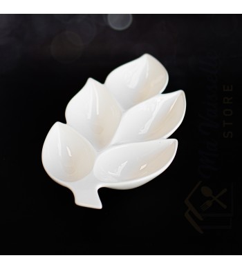 Assiette de présentation en céramique Forme: feuille Dimensions: 32*18cm, profondeur 5cm Utilisations: présentation de fruits secs, de mignardises... Entretien facile:...