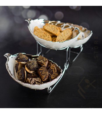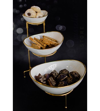 Présentoir 3 étages avec coupelles en céramique Support en métal Stable et resistant Coupelles amovibles, utilisables sans le support Dimension des coupelles: 15*20cm,...