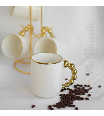 Service a café complet Le service comprend : 6 tasses et 6 sous tasses Matériau: céramique Couleur: blanc/doré Dimension des tasses: hauteur 6cm, diamètre 5cm Diamètre...