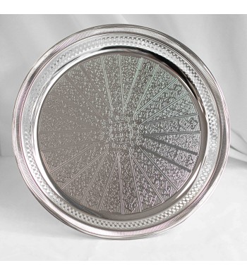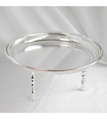 Plateau à thé sur pied Style: oriental, traditionnel Couleur: argenté 3 pieds en métal: stable et résistant Dimensions: diamètre 55cm, hauteur 14cm Pieds amovibles:...