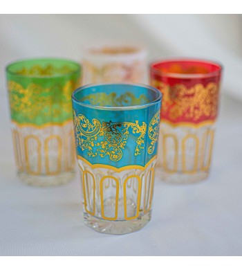 Set de 12 verres à thé Style: traditionnel marocain Le set comprend un mélange de 4 couleurs (3 verres par couleur): rouge, bleu, vert et blanc Hauteur 9,5cm Diamètre...