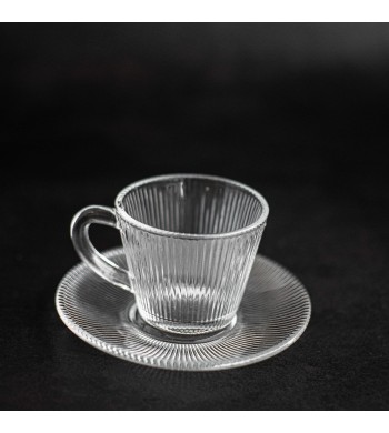 Lot de 6 verres Verre strié ultra résistant Forme: cylindrique Couleur: transparent Contenance 150ml Dimensions: Hauteur 9cm, Diamètre 6cm Compatible lave vaisselle