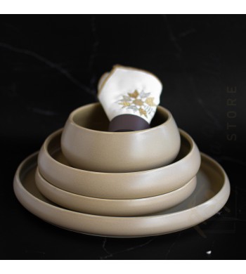Service d'assiettes 24 pièces Matériau: céramique Le service de table est pour 6 personnes Couleur: beige Style : intemporel et épuré Polyvalent: pour service quotidien...
