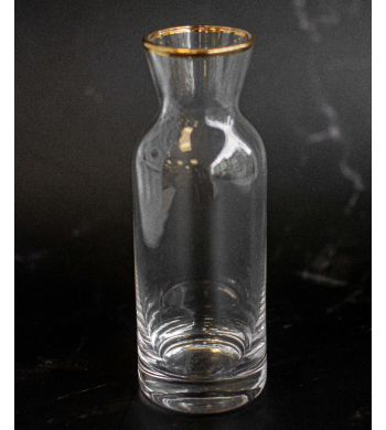 Carafe individuelle Matériau: verre transparent Liseré doré Contenance: environ 250ml Dimensions: hauteur 17cm, diamètre 7cm