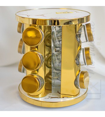 Présentoir carrousel à épices Carroussel rotatif 360° Couleur: Blanc et doré Support en acier inoxydable Comprend 12 pots à épices en verre avec couvercle hermétique en...