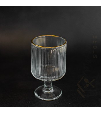 Lot de 6 coupes à glace Matériau: verre strié Couleur: transparent avec liseré dore Dimensions: hauteur 10cm, diamètre 10cm Verre ultra-resistant Compatible lave...