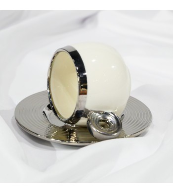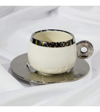 Service a café complet Le service comprend : 6 tasses et 6 sous tasses Matériau: céramique Couleur: blanc/doré ou blanc/argenté au choix Dimension des tasses: hauteur...