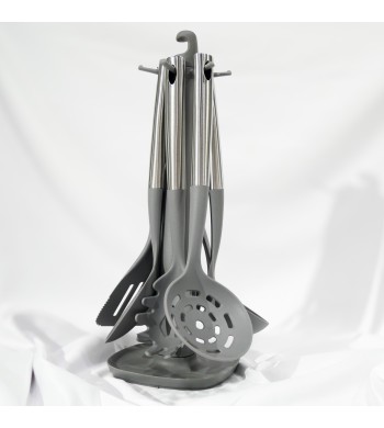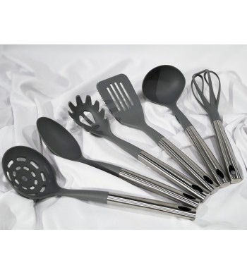Set d'ustensiles en silicone comprenant 7 pièces: - 1 louche - 1 cuillère - 1 cuillère écumoir - 1 cuillère à pâtes - 1 spatule ajourée - 1...
