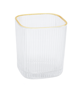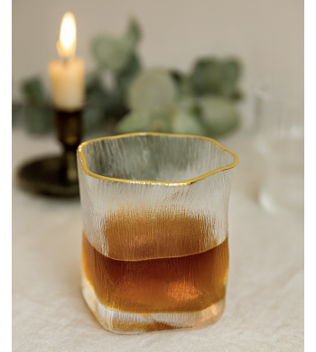 Lot de 6 verres Verre ultra résistant Forme: carrée Couleur: transparent avec liseré doré Contenance 150ml Dimensions: Hauteur 9cm, Diamètre 6cm Compatible lave...