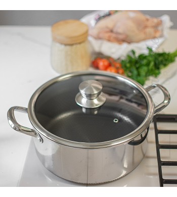 Découvrez la cocotte-minute Royal Swiss en acier inoxydable, idéale pour une cuisson rapide, saine et savoureuse. Grâce à son ouverture manuelle sécurisée et son design ergonomique, elle allie praticité, robustesse et élégance. Conçue pour convenir à tous types de plaques (gaz, électrique, vitrocéramique, halogène et induction), elle s’impose comme l’alliée incontournable de votre cuisine.