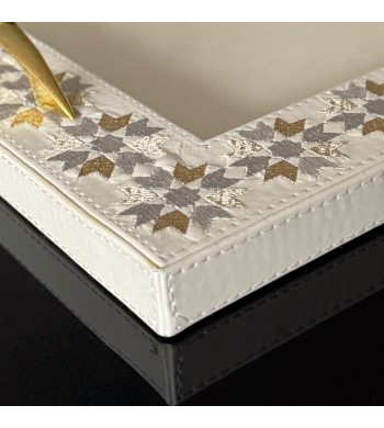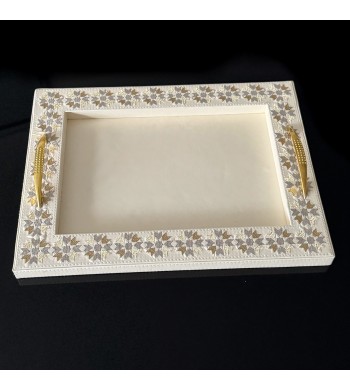 Plateau de service artisanal Matériau: bois Revêtement simili cuir avec ornement brodé Dimensions: 40*30cm Utilisations: service du thé à la menthe et de toute autre...