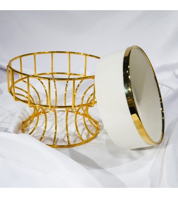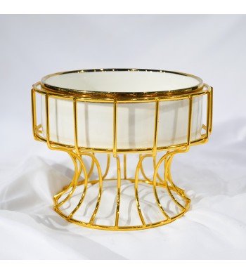 Présentoir blanc et doré design Matériau: plateau en céramique et support en métal Couleur: blanc et doré Plateau amovible, nettoyage simplifié Dimensions: diamètre 17cm,...