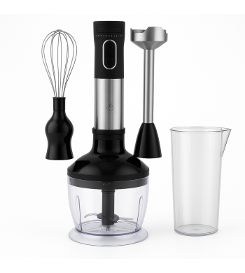 Mélangeur à main, mixeur plongeant Marque: Royal Swiss Puissance 500 Watts Nettoyage facile, pièces détachâtes Fourni avec un fouet et un hachoir Lames en acier...
