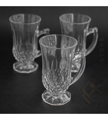 Lot de 6 verres Couleur: transparent Verre à thé avec anse Dimensions: hauteur 12cm, diamètre 6cm Contenance 125ml Entretien facile: compatible lave vaisselle, idéal pour...