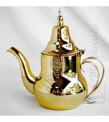 Théière marocaine artisanale martelée à la main Issue de l'artisanat marocain (artisans de la ville de Fes) Matériau: Cuivre et nickel Couleur: Doré Contenance: 0,9L ou...