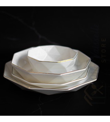 Service assiettes en porcelaine complet pour 6 personnes comprenant: - 6 bols: diamètre 14cm, hauteur 7cm - 6 assiettes à dessert: diamètre 18cm, profondeur 3cm...